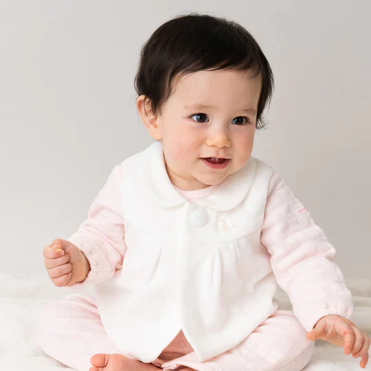 Ce gilet sans manches polyester et en coton léger et super doux. Il accompagnera votre bébé toute cette saison ! On adore son petit col claudine.