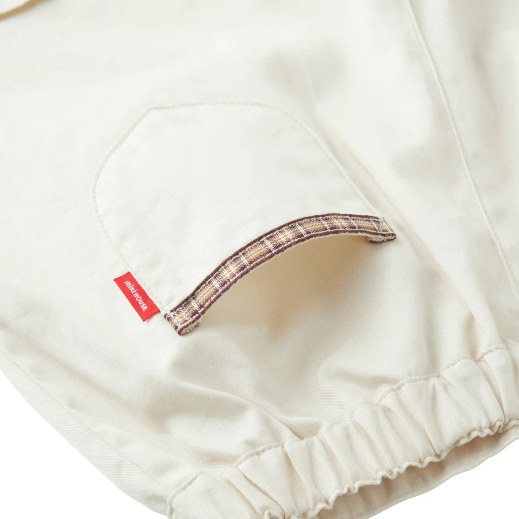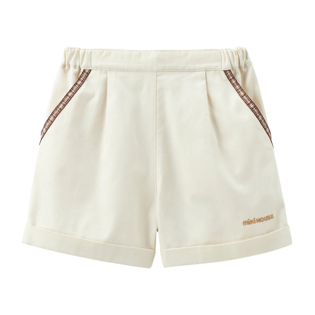 Découvrez le short à rayures et carreaux ivoire de Miki House : chic, ludique et parfait pour des journées enchantées !