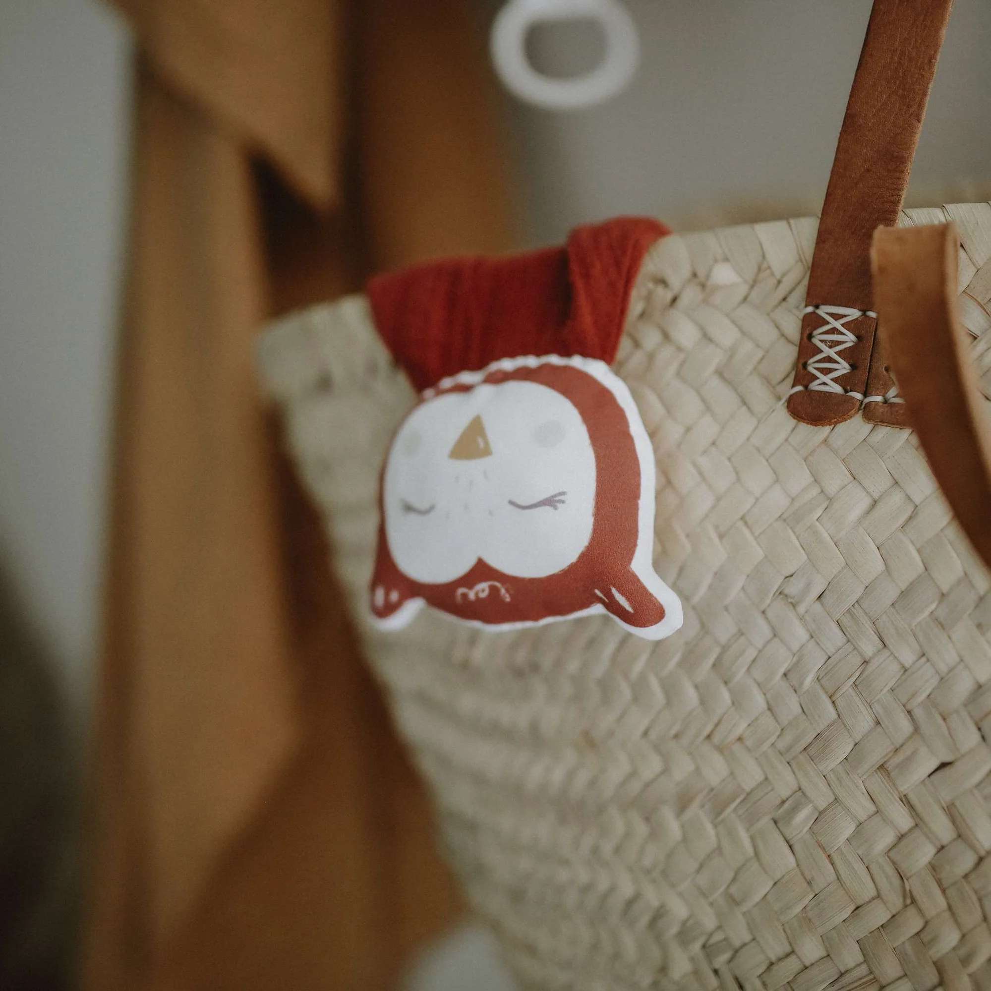 Doudou Hibou en double gaze de coton rouge terracotta – Le Compagnon Idéal pour Bébé