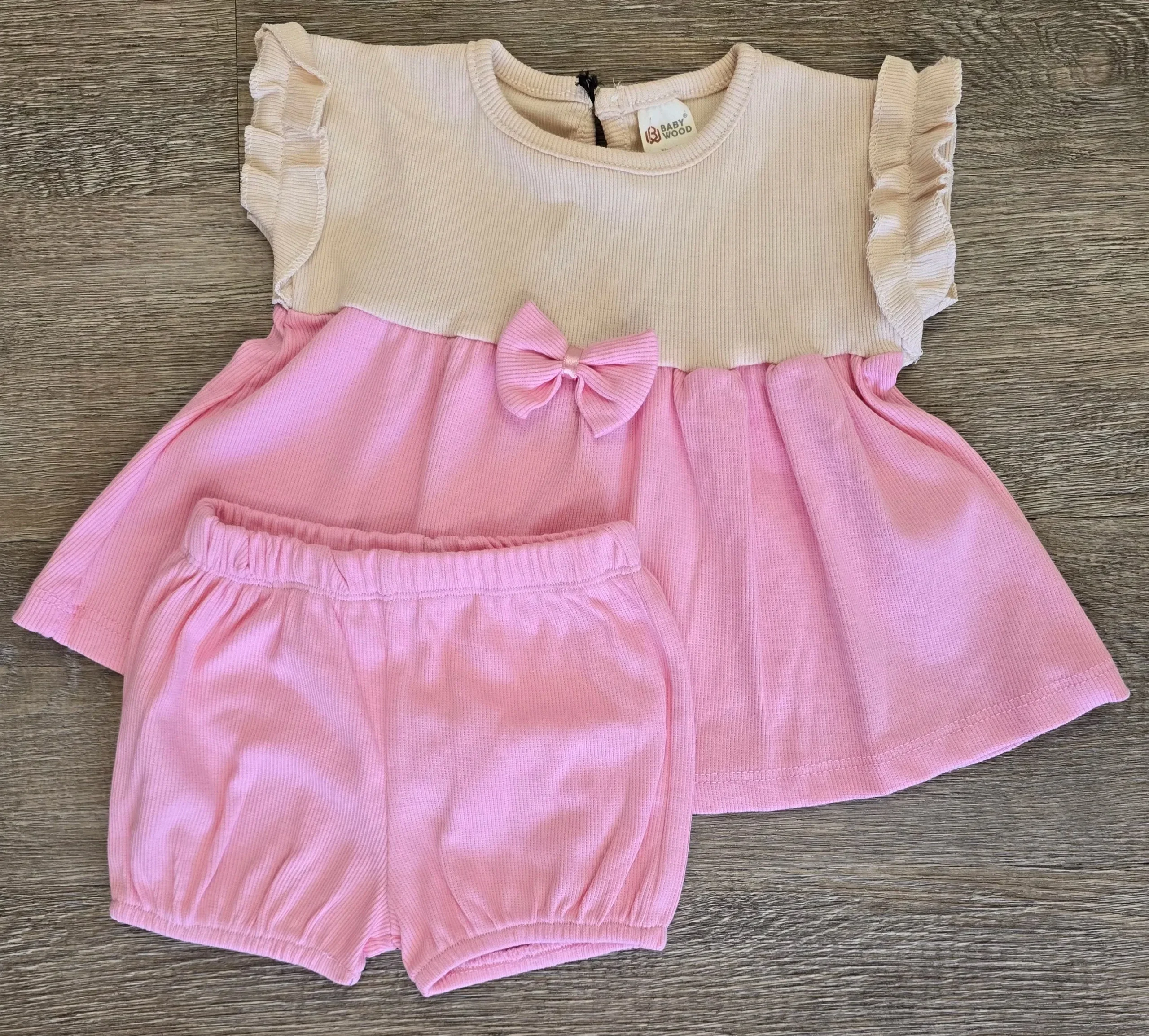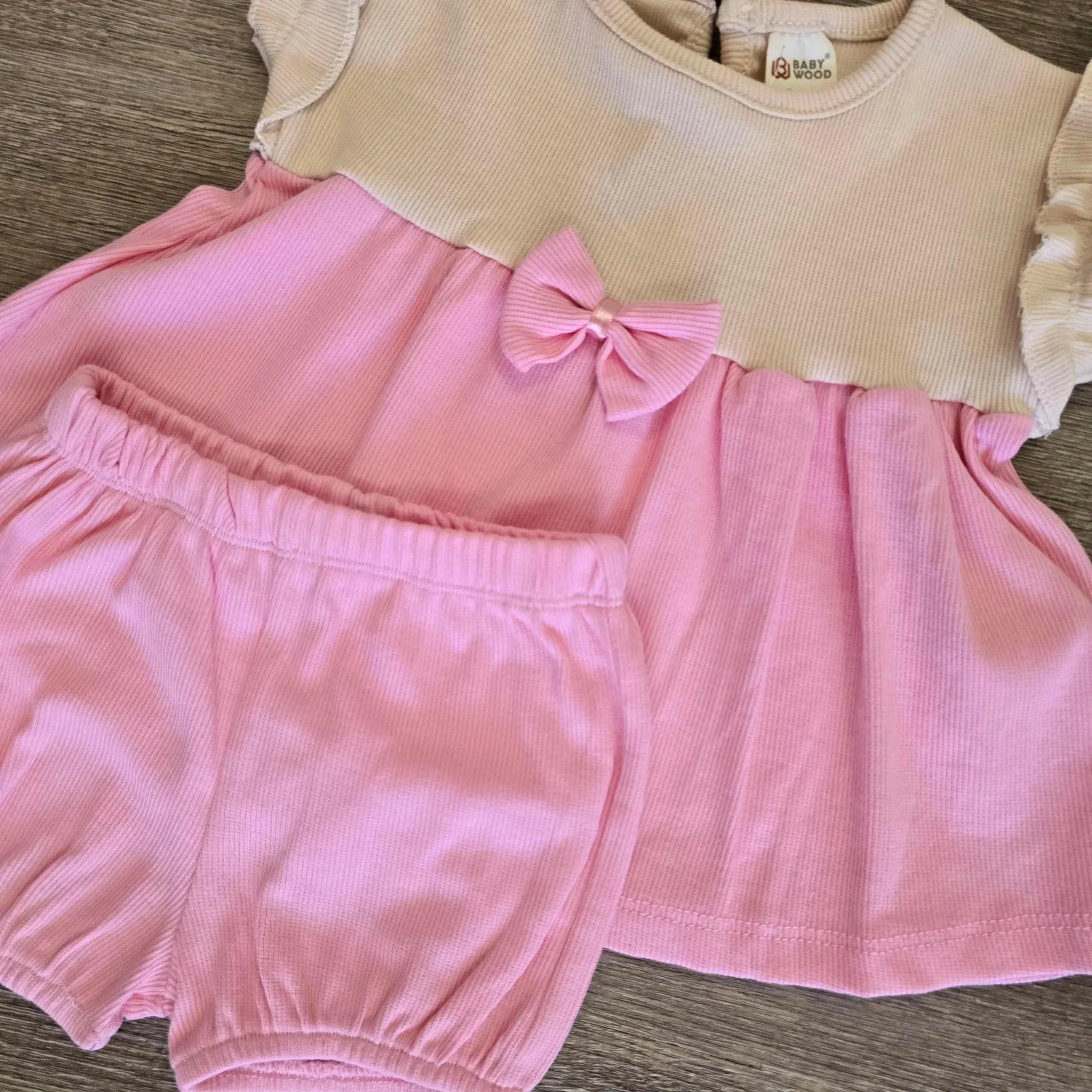 Haut volanté rose & short assorti (95 % coton)