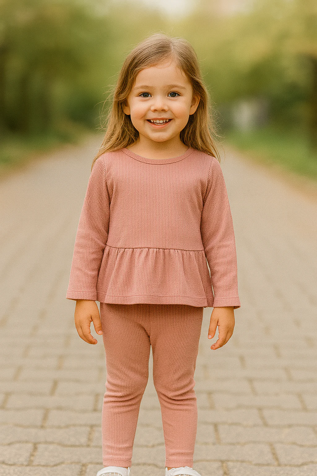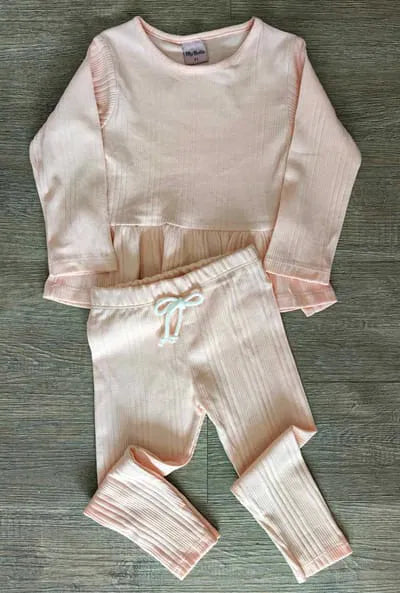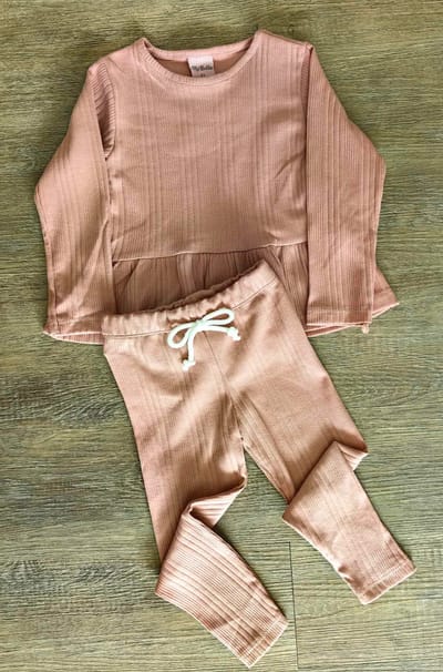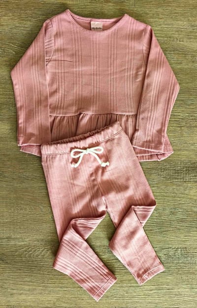 Ensemble fille 100 % coton dispo en 3 couleurs : tunique + pantalon côtelé confort.
