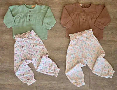 La blouse en gaze de coton à manches longues est douce et respirante, parfaite pour la peau délicate des enfants. Elle s’accorde harmonieusement avec un pantalon fluide imprimé à taille froncée, pour un style bohème et décontracté.