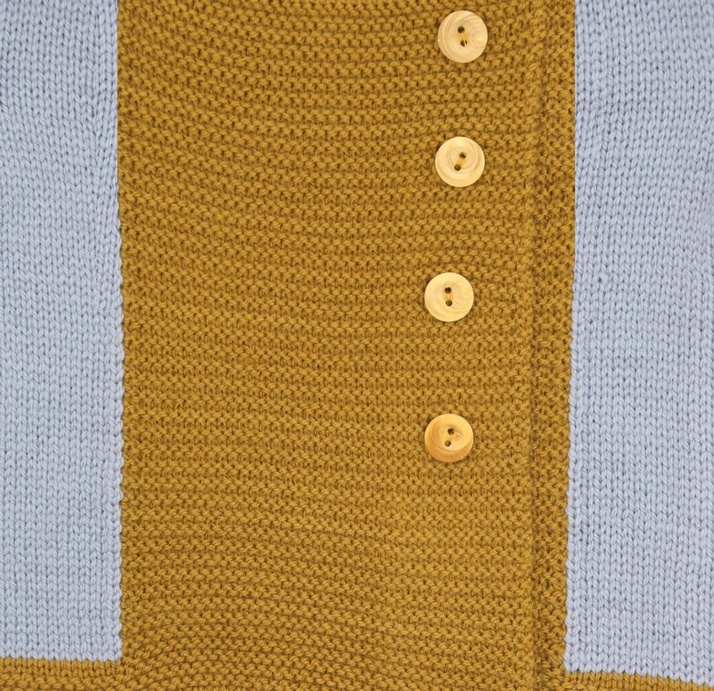 Le gilet bébé Tichat gris & brun-doré en laine mérinos extrafine enveloppe délicatement bébé dans un cocon de chaleur et de douceur, tout en laissant respirer sa peau fragile. Sa maille souple et respirante en fait un gilet bébé en laine idéal dès la naissance. Le boutonnage sur le côté facilite l’habillage, alliant confort et élégance au quotidien.