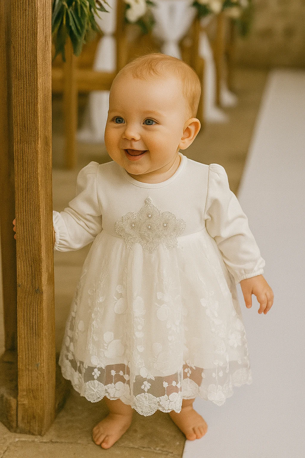 Offrez à votre princesse un look élégant avec cette magnifique robe de cérémonie bébé fille blanche.