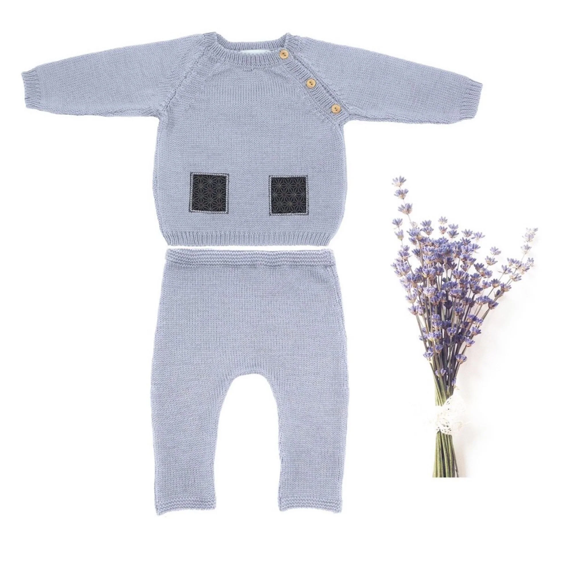 La tenue bébé Babou grise associe un pull et un pantalon en laine mérinos extrafine,
