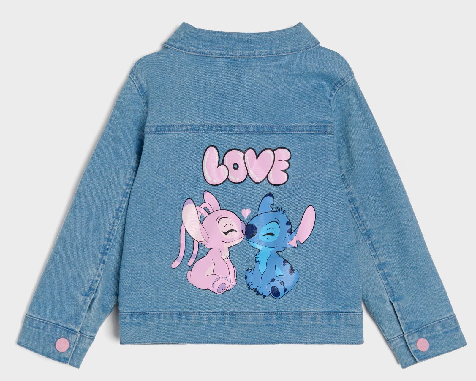 Faites craquer tout le monde avec cette adorable veste en jean pour fille décorée de Stitch et Angel